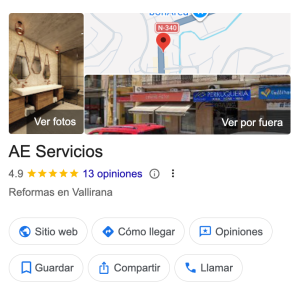 Fuente: Perfil de Empresa de AE Servicios en Google creado por Recomiend.app.