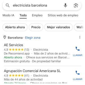¿Cómo funciona este sistema? A diferencia de los anuncios de toda la vida donde pagas por cada «clic» (aunque luego no te llamen), en Local Services solo pagas cuando un cliente real te llama o te escribe. Es un sistema de «pago por contacto» que te coloca en la parte más alta de los resultados de búsqueda, incluso por encima de los anuncios normales.